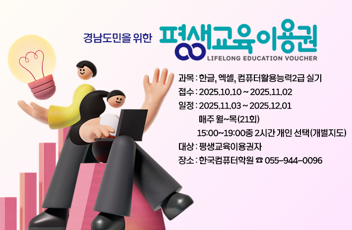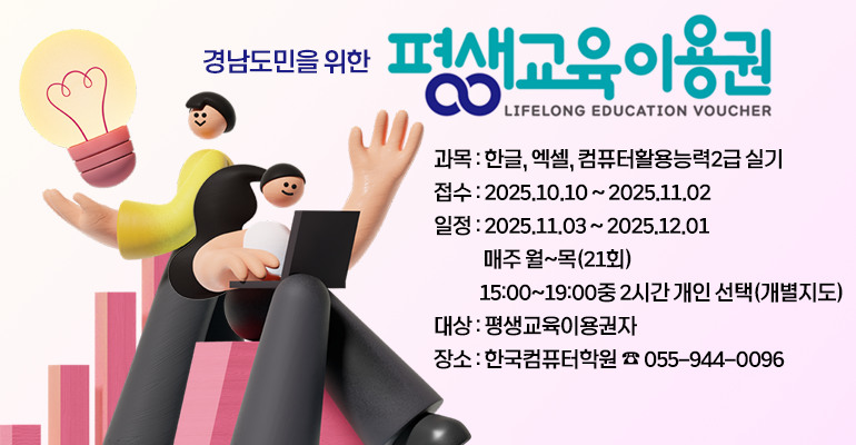 평생교육이용권 강좌(무료) 한글 / 엑셀 / 컴퓨터활용능력2급실기