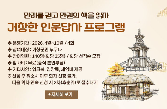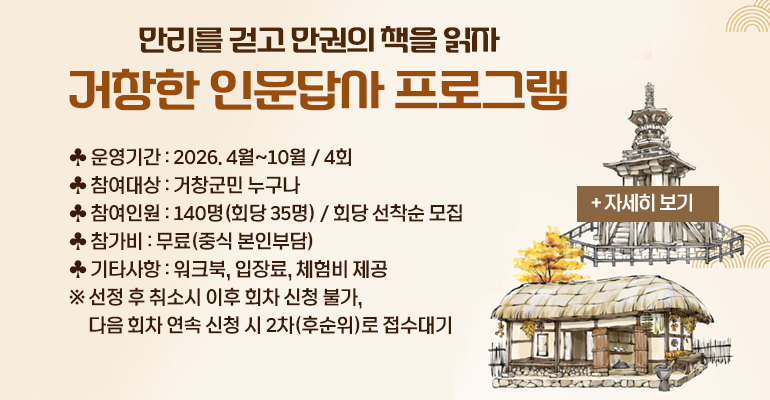 2026년 거창한 인문답사 프로그램(만리를 걷고 만권의 책을 읽자)
