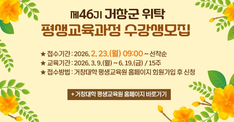 2026학년도 1학기 제46기 평생교육과정 수강생 모집