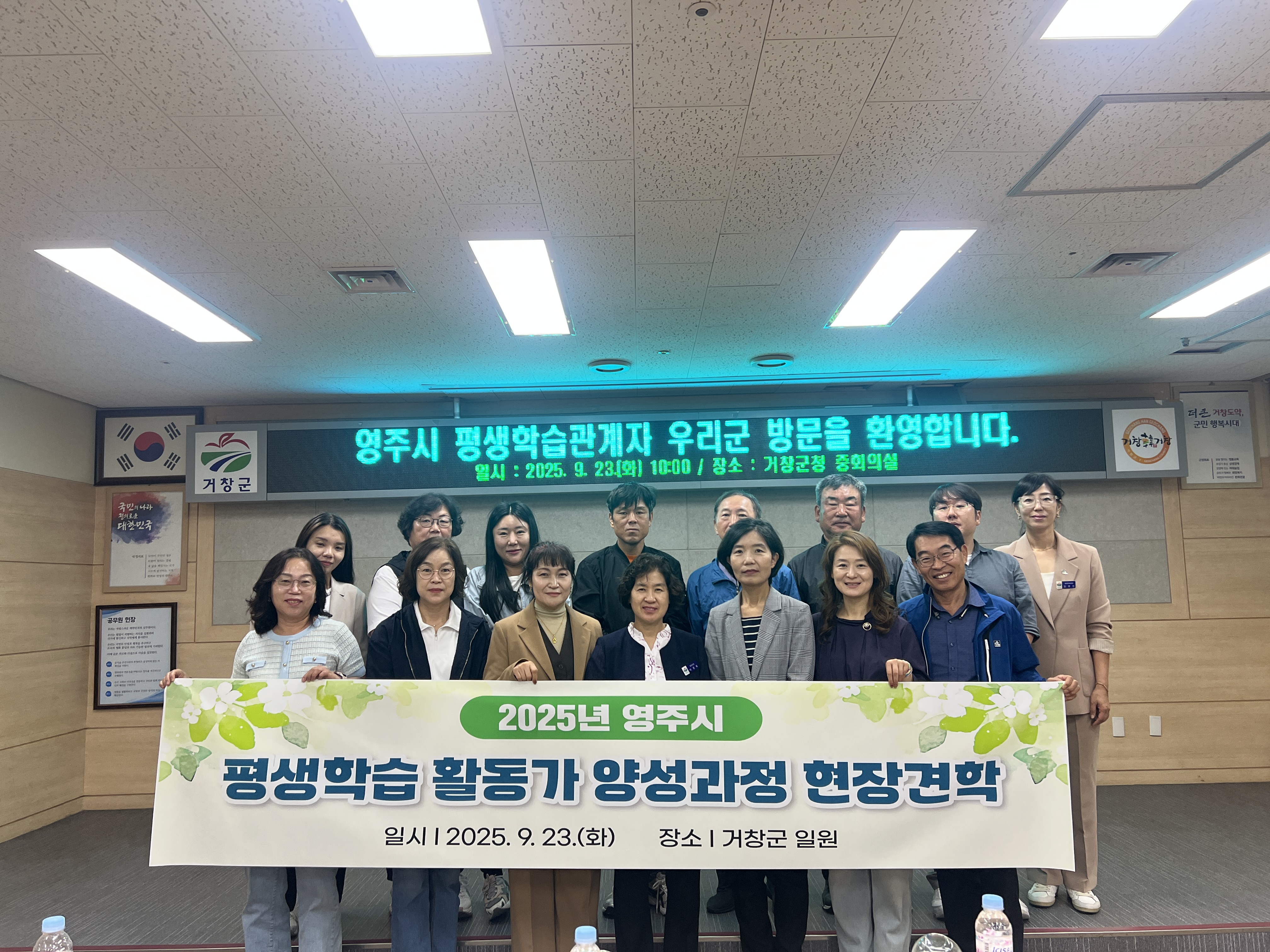 거창군은 지난 23일, 영주시 평생학습과 관계자와 영남대 교육학과 관계자들이 거창군을 방문해 평생학습 우수사례를 벤치마킹하기 위해 방문했다고 밝혔다. 이번 방문은 영주시가 평생학습활동가를 양성하고 평생학습을 활거창군은 지난 23일, 영주시 평생학습과 관계자와 영남대 교육학과 관계자들이 거창군을 방문해 평생학습 우수사례를 벤치마킹하기 위해 방문했다고 밝혔다. 이번 방문은 영주시가 평생학습활동가를 양성하고 평생학습을 활성화하는 과정에서, 교육발전특구로 지정된 이후 활발한