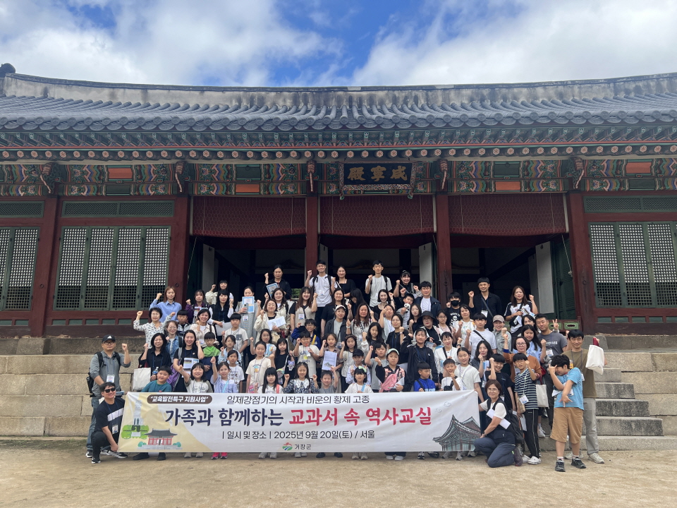 거창군은 지난 20일 거창군 교육발전특구 사업의 일환으로 2025년 제5차 가족과 함께하는 교과서 속 역사교실을 서울 덕수궁 정동길 일원에서 진행했다고 밝혔다. 이번 탐방은 ‘일제강점기의 시작과 비운의 황제 고종‘이거창군은 지난 20일 거창군 교육발전특구 사업의 일환으로 2025년 제5차 가족과 함께하는 교과서 속 역사교실을 서울 덕수궁 정동길 일원에서 진행했다고 밝혔다. 이번 탐방은 ‘일제강점기의 시작과 비운의 황제 고종‘이라는 주제로 마련됐으며, 환구단, 구 러시아공사관, 덕