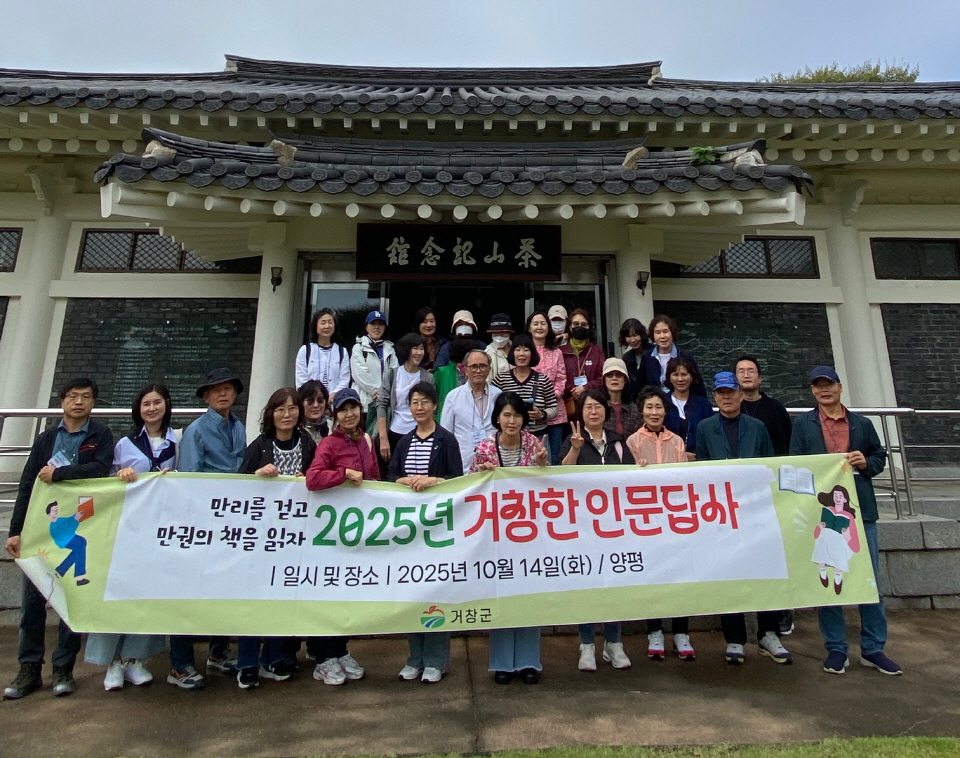 거창군은 지난 14일 경기도 양평 일원에서 2025년 제3차 거창한 인문답사를 진행했다고 밝혔다. 이번 인문답사는 ‘좌초된 꿈을 학문으로 승화시킨 정약용과 실학정신’을 주제로 마련됐으며, 다산 정약용의 생가와 두물머거창군은 지난 14일 경기도 양평 일원에서 2025년 제3차 거창한 인문답사를 진행했다고 밝혔다. 이번 인문답사는 ‘좌초된 꿈을 학문으로 승화시킨 정약용과 실학정신’을 주제로 마련됐으며, 다산 정약용의 생가와 두물머리를 탐방하며 조선 후기 실학사상의 중심이었던 다산의